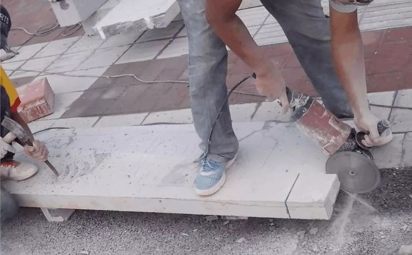 1.加工前對半成品青石板(條)進行優選,不得有裂縫、隱殘、污點、紅白線、石瑕、石鐵等缺陷,且青石應色澤一致。避免因返工或加工過程中斷裂造成費工費時。