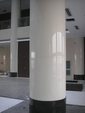 5、 磨圓弧邊:先把線標(biāo)明,用手磨機(jī)把形體做好,然后采用手提水磨機(jī)拋光,與其它的石材磨邊操作方式大體相同,加工過(guò)程中不能干磨,拋光時(shí)必須采用水拋,不可采用干拋,加厚邊時(shí)應(yīng)先把所加的兩對(duì)接面部位用磨機(jī)磨粗,將磨粗的部位清理干凈,若有灰塵及其它東西,均會(huì)影響效果,做法國(guó)邊時(shí),首先在切機(jī)上把線起刮出來(lái),然后再用上述方法磨邊,就可以達(dá)到最佳效果。
