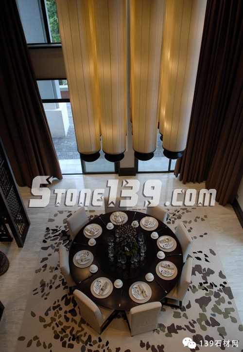 把東方傳統(tǒng)的氣韻蘊藏在寬闊開揚的大尺度的空間中,通過中國傳統(tǒng)建筑中軸對稱的平面布局和立面構圖、中國印象的黑白色調(diào)、巨幅的線描中國山水,高聳到頂?shù)闹惺礁羝?,悉心設計的原創(chuàng)中國風家具,呈現(xiàn)現(xiàn)代中式空間的大氣場域。