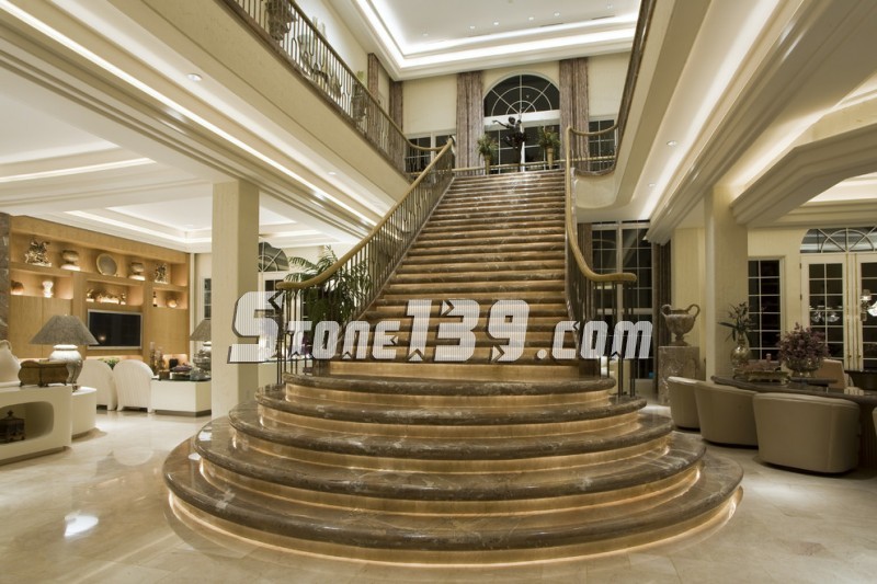 過去由于石材的機(jī)械切割工藝跟不上,是先安裝扶手,然后將磚體開一個(gè)豁口再貼上去,但是這樣做的結(jié)果就是,一眼看到樓梯上就發(fā)現(xiàn)有一個(gè)長(zhǎng)方形的豁口,不美觀,但因?yàn)楣に囀芟抟仓荒苓@樣。
