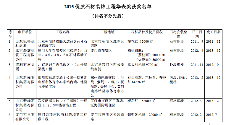 附件:2015優質石材裝飾工程華表獎獲獎名單