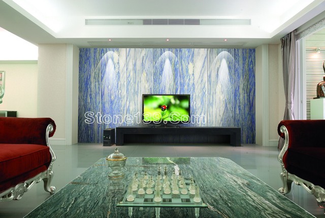 海冰藍石材的裝飾應用 屏風和背景墻。。。。