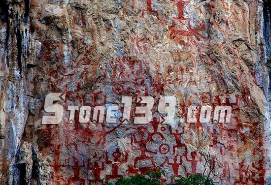左江花山巖畫文化景觀位于廣西壯族自治區(qū)崇左市,包含寧明、龍州、江州、扶綏三縣一區(qū)的38個巖畫點、109處巖畫、4050個圖像。公元前5世紀(jì)至公元2世紀(jì),壯族先民駱越人在左江及其支流明江兩岸200多公里的懸崖峭壁上,繪制了巨大的赭紅色巖畫。