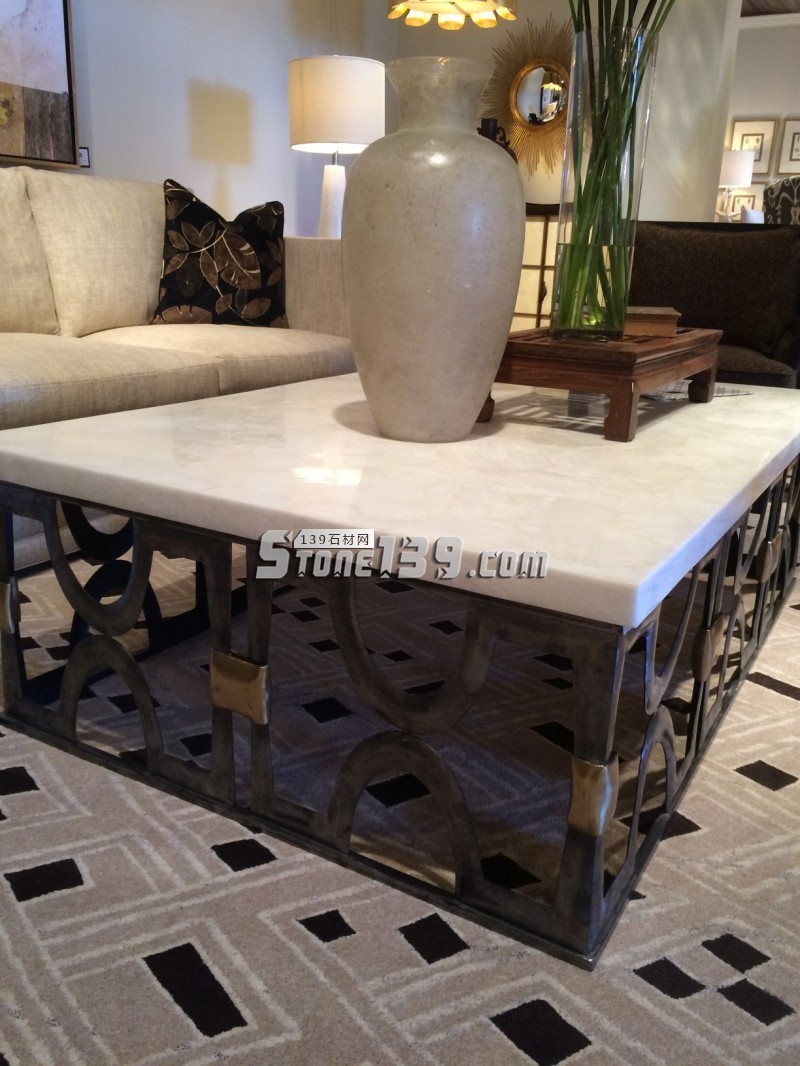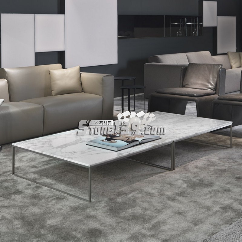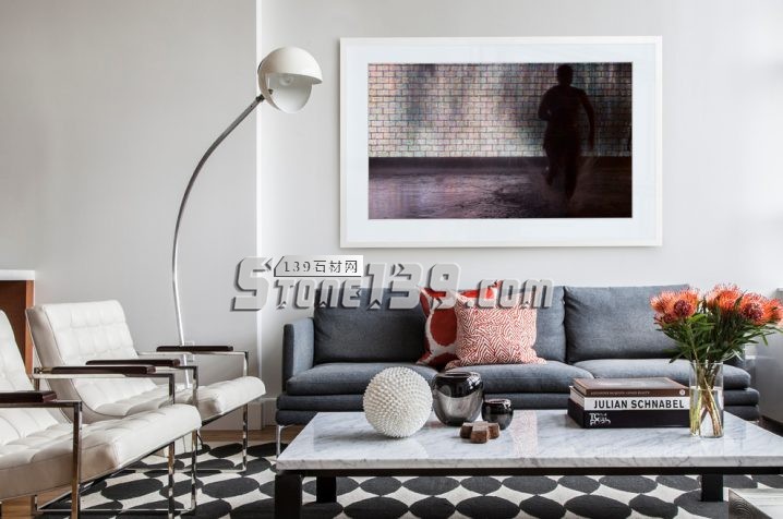 白色大理石(細花白) 灰色布的材質沙發(fā)