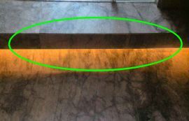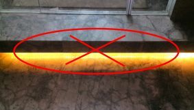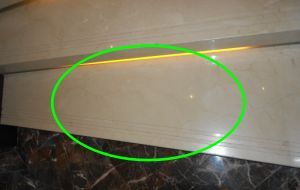 在踏步反光燈槽側(cè)板石材擋板底口加一條3CM的石材背條,將LED燈帶固定順直在背條上,有效預(yù)防LED在地面上的反光。