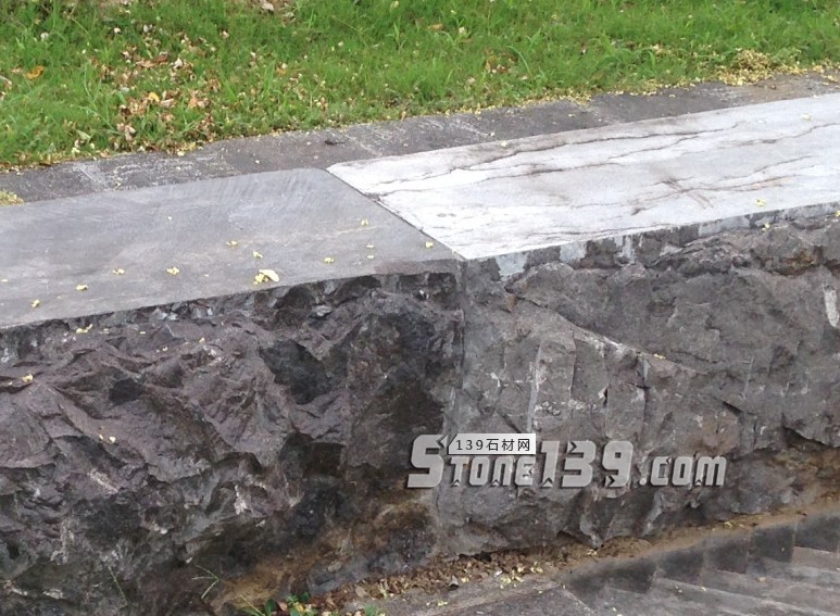 這種“毛面處理+表面密封防護處理”,我們曾在這篇《外墻毛面大理石處理》的文章中有過詳細的介紹,該案例是位于室外的大理石外墻,使用這種方法處理,從2005年使用至今,石材未出現嚴重污染及病變現象。
