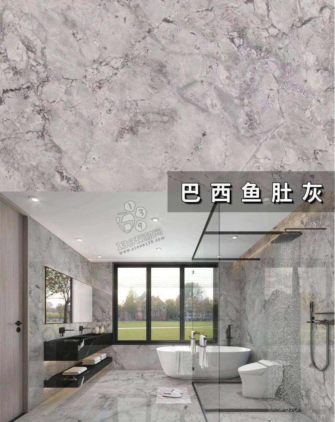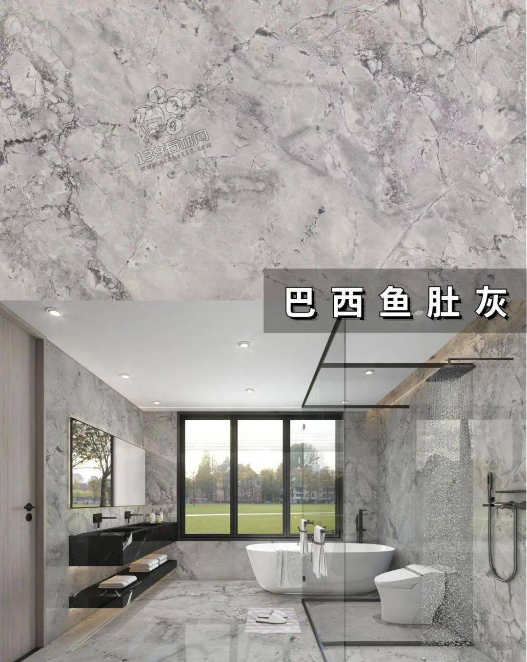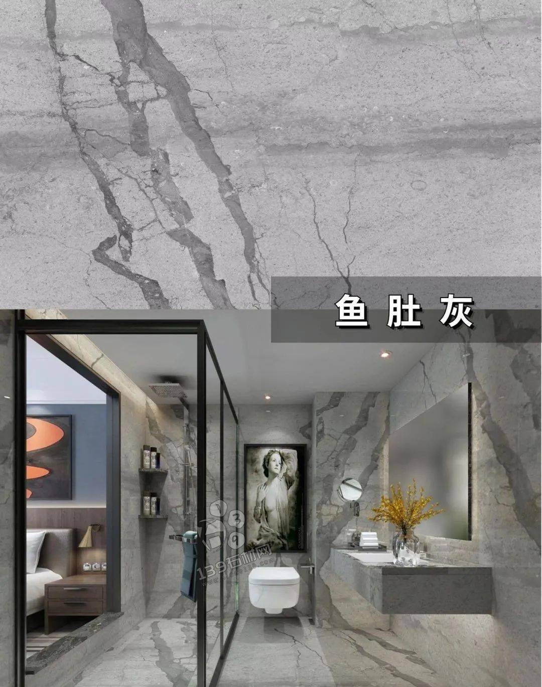 國產魚肚灰,小編認為最好看的魚肚灰,板面帶有藍色基調,紋理夸張不失美感 在實際案例中有著相當出色的表現。